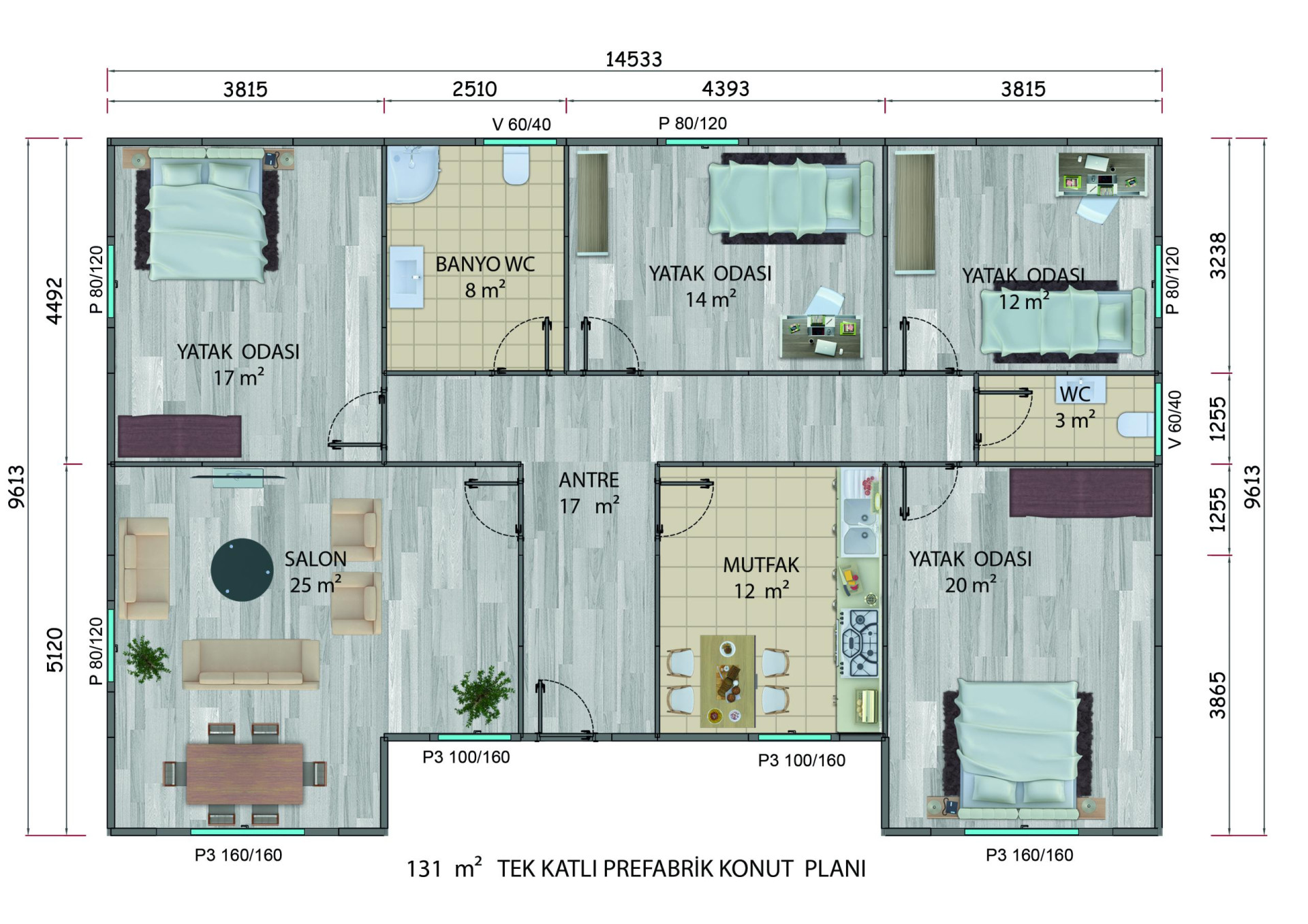 131m² Tek Katlı Prefabrik Yapı