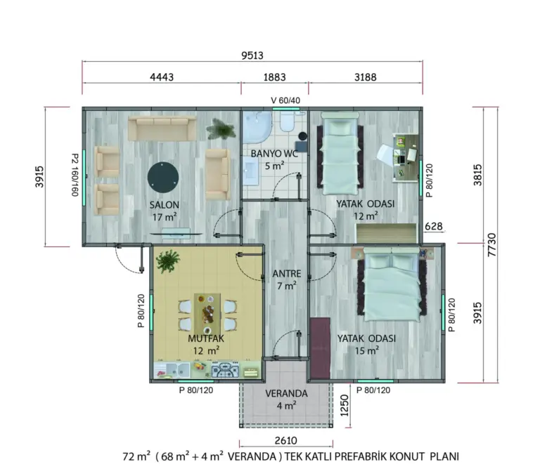 - Kar Yükü: 80 kg/m² (lokasyona göre değişebilir)