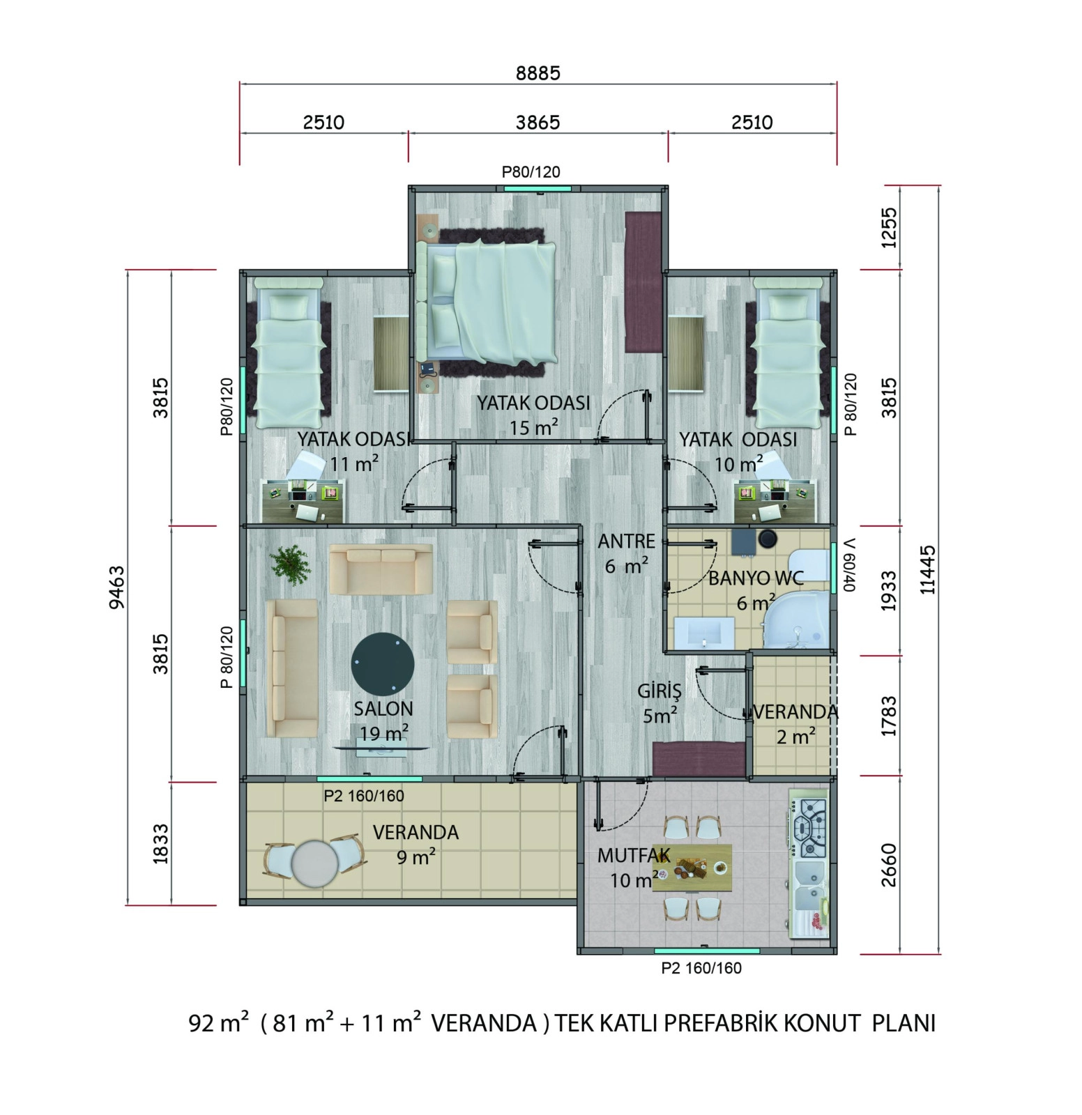 92m² Tek Katlı Prefabrik Yapı