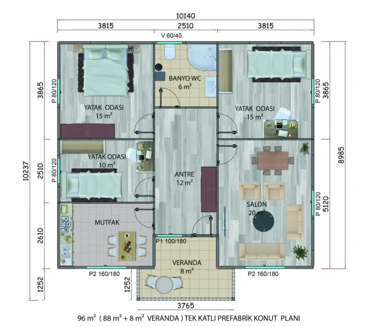 96m² Tek Katlı Prefabrik Yapı